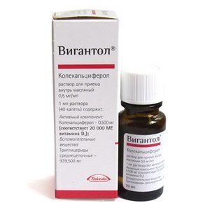 Состав, форма выпуска и упаковка Капли для приема внутрь масляные - 1 мл (40 капель): Активный компонент: колекальциферол - 0,500 мг (соответствует 20 000 ME витамина D3); Вспомогательные вещества: триглицериды среднецепочные - 939,500 мг. По 10 мл препарата во флакон коричнево-оранжевого светозащитного стекла (тип III Евр. Фарм.), укупоренный пробкой-капельницей из полиэтилена белого цвета и навинчиваемой крышкой из полипропилена белого цвета. По 1 флакону вместе с инструкцией по применению помещают в картонную пачку. Описание лекарственной формы Прозрачный, от слегка желтоватого до светло-желтого цвета, вязкий раствор. Фармакотерапевтическая группа Витамин - кальциево-фосфорного обмена регулятор. Фармакокинетика Абсорбция Витамин D3 (колекальциферол) при пероральном приеме практически полностью всасывается (80%) в тонкой кишке. Максимальная концентрация в тканях достигается через 4-5 часов, после чего концентрация несколько снижается, сохраняясь длительное время на постоянном уровне. Распределение Колекальциферол в плазме крови связывается с колекальциферол-связывающим белком и транспортируется в печень, где происходит микросомальное гидроксилироваиие с образованием неактивного метаболита 25-гидроксиколекальциферола (кальцифедиол). Концентрация циркулирующего в крови кальцифедиола является показателем уровня витамина D3 в организме. Метаболизм Затем кальцифедиол поступает в почки, где подвергается повторному гидроксилированию с образованием активного метаболита 1,25-дигидроксиколекальциферола (кальцитриол). Витамин D3 и его метаболиты могут накапливаться в мышечной и жировой тканях, где их концентрация может сохраняться до нескольких месяцев. После приема высоких доз витамина D3 концентрация кальцифедиола в сыворотке крови может сохраняться повышенной в течение нескольких месяцев. Гиперкальциемия вследствие передозировки витамином D3 может сохраняться в течение нескольких недель. Выведение Кальцитриол подвергается дальнейшему гидроксилированию перед выведением из организма. Основным путем выведения витамина D3, а также его гидроксилированных и сульфатных производных является желчь (кал), и не менее 2% указанных веществ выделяется с мочой. Колекальциферол проникает через плацентарный барьер и выделяется с грудным молоком. Фармакодинамика Колекальциферол является противорахитическим средством, восполняющим дефицит витамина D3. Он участвует в регуляции кальций-фосфорного обмена, усиливает всасывание кальция в кишечнике и реабсорбцию фосфатов в почках, способствует минерализации костей и является необходимым для нормального функционирования паращитовидных желез. Дефицит кальция и/или витамина D3 вызывает гиперсекрецию паратгормона. Вследствие этого вторичного гиперпаратиреоза возникает усиление ремоделирования костной ткани, что приводит к хрупкости и переломам костей. Применение кальция и витамина D3 в рекомендуемом диапазоне доз вызывает снижение секреции паратгормона. Показания к применению Профилактика рахита и остеомаляции у детей и взрослых; профилактика заболеваний, связанных с недостаточностью (дефицитом) витамина D3 у здоровых детей и взрослых без нарушений всасывания; поддерживающая терапия остеопороза у взрослых; профилактика рахита у доношенных и недоношенных новорожденных; профилактика забол