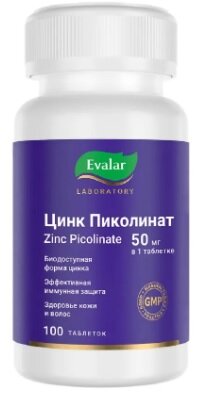 Состав Целлюлоза микрокристаллическая (носитель), цинка пиколинат, компоненты пленочного покрытия (пищевые добавки): гидроксипропилметилцеллюлоза (загуститель), полиэтиленгликоль (глазирователь); кроскарамеллоза (носитель), стеарат кальция и диоксид кремния аморфный (агенты антислеживающие). Компонент Содержание % от рекомендуемого уровня суточного потребления 1 таблетка 1/2 таблетки Цинк 50 мг 25 мг 166,7 % Допускается отклонение в соответствии с ТУ 10.89.19-526-21428156-2024. Описание Входящий в состав цинк в биодоступной (легкодоступной) форме способствует: повышению сопротивляемости организма к инфекциям и укреплению иммунитета; регуляции деятельности сальных желез, устранению жирного блеска и покраснений кожи, предотвращению выпадения волос, стимулированию синтеза собственного коллагена; усилению выработки инсулина и защите от дегенерации макулы (часть сетчатки глаза); увеличению уровня тестостерона в организме и улучшению процесса сперматогенеза у мужчин. Противопоказания Индивидуальная непереносимость компонентов, беременность, кормление грудью. Перед применением рекомендуется проконсультироваться с врачом. Способ применения Взрослым принимать по 1/2-1 таблетке в день (25-50 мг цинка), запивая водой. Продолжительность приема - 1 месяц. При необходимости прием можно продолжить. Особые указания Биологически активная добавка (БАД) к пище. Не является лекарственным средством. Перед применением рекомендуется проконсультироваться с врачом.
