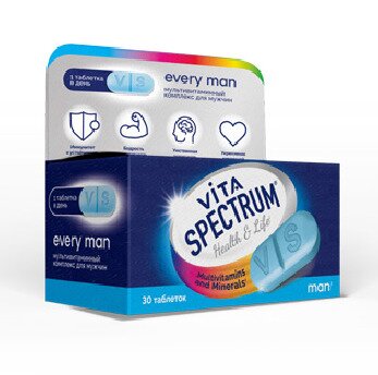 Состав Кальция гидроортофосфат, целлюлоза микрокристаллическая (носитель), магния оксид, L-аскорбиновая кислота, поливинилпирролидон (стабилизатор), крахмал окисленный (загуститель), DL-альфа-токоферола ацетат, гидроксипропилметилцеллюлоза (носитель), никотиновая кислота, магния стеарат (агент антислеживающий), мальтодекстрин, D-пантотенат кальция, кальция карбонат (краситель), тальк (агент антислеживающий), железа (II) фумарат, рибофлавин, пиридоксина гидрохлорид, тиамина мононитрат, марганца сульфат, полиэтиленгликоль (глазирователь), ретинола ацетат, меди сульфат, бриллиантовый голубой (краситель), фолиевая кислота, калия йодид, D-биотин, натрия молибдат (VI), хрома (III) хлорид, фитоменадион, натрия селенит, холекальцеферол, кобальта сульфат, цинка оксид, цианокобаламин. Показания В качестве биологически активной добавки к пище – дополнительного источника витаминов А, Е, С, D3, К1, В1, В2, В6, В12, биотина, фолиевой кислоты, ниацина, пантотеновой кислоты, минеральных веществ: магния, марганца, железа, йода, меди, хрома, молибдена, селена, цинка, кобальта; содержит кальций и фосфор. Противопоказания Индивидуальная непереносимость компонентов продукта. Лицам с заболеваниями щитовидной железы рекомендуется проконсультироваться с врачом-эндокринологом. Прекратите использование и проконсультируйтесь с врачом, если возникнут какие-либо побочные реакции. Способ применения Взрослым по 1 таблетке 1 раз в день после еды. Перед использованием рекомендуется проконсультироваться с врачом.Продолжительность приема – 1 месяц. При необходимости прием можно повторить. Особые указания Биологически активная добавка (БАД) к пище. Не является лекарственным средством. Перед применением рекомендуется проконсультироваться с врачом.