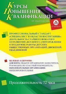 Профессиональный стандарт «Специалист в области воспитания»: деятельность старшего вожатого по развитию детского самоуправления и поддержке работы детских общественных организаций, движений, объединений (72 ч.) Курсы повышения квалификации УчМет | V4.Ru: Маркетплейс