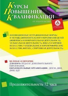 Инновационные нетрадиционные формы и методы дополнительного образования детей (живопись и изобразительная деятельность; музыкальная деятельность; вокал и хоровое искусство; танцевальное и хореографическое искусство, фитнес, спортивная деятельность) (72 ч)