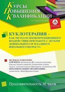 Куклотерапия – как метод психокоррекционного воздействия при работе с детьми дошкольного и младшего школьного возраста (36 ч.) Курсы повышения квалификации УчМет | V4.Ru: Маркетплейс