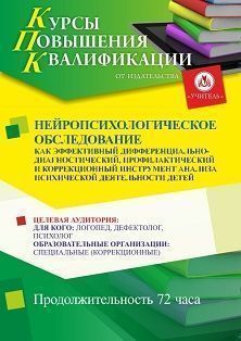Нейропсихологическое обследование как эффективный дифференциально-диагностический, профилактический и коррекционный инструмент анализа психической деятельности у детей (72 ч.)
