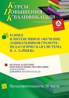 Раннее и интенсивное обучение дошкольников грамоте: педагогическая система Н. А. Зайцева (36 ч.) Курсы повышения квалификации УчМет | V4.Ru: Маркетплейс