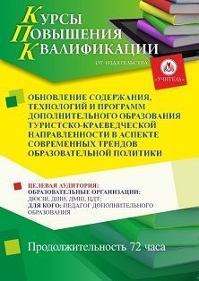 Обновление содержания, технологий и программ дополнительного образования туристско-краеведческой направленности в аспекте современных трендов образовательной политики (72 ч.) Курсы повышения квалификации УчМет | V4.Ru: Маркетплейс
