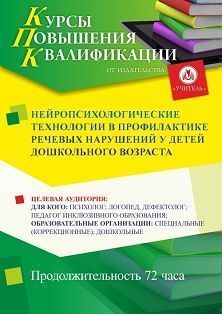 Нейропсихологические технологии в профилактике речевых нарушений у детей дошкольного возраста (72 ч.) Курсы повышения квалификации УчМет | V4.Ru: Маркетплейс
