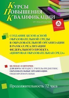 Создание безопасной образовательной среды в образовательной организации в рамках реализации федерального проекта «Цифровая образовательная среда» (72 ч.)