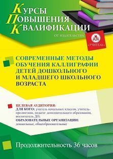 Современные методы обучения каллиграфии детей дошкольного и младшего школьного возраста (36 ч.) Курсы повышения квалификации УчМет | V4.Ru: Маркетплейс