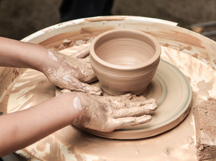 Мастер объяснит основные приемы получения формы на гончарном круге, поставит движение рук. За время одного занятия можно успеть самостоятельно сделать одно собственное изделие. Все материалы, а также тапочки и фартуки предоставляются. По желанию можно дополнительно заказать глазуровку изделия или записаться на мастер-класс по росписи керамики.