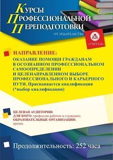 Оказание помощи гражданам в осознанном профессиональном самоопределении и целенаправленном выборе профессионального и карьерного пути. Присваивается квалификация (выбор квалификации*) (252 ч.) Профессиональная переподготовка УчМет | V4.Ru: Маркетплейс