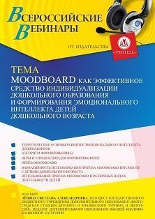 Вебинар «Moodboard как эффективное средство индивидуализации дошкольного образования и формирования эмоционального интеллекта детей дошкольного возраста»