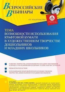 Вебинар «Возможности использования крафтовой бумаги в художественном творчестве дошкольников и младших школьников»