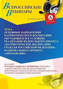 Вебинар «Основные направления патриотического воспитания обучающихся в условиях реализации Федерального проекта “Патриотическое воспитание граждан Российской Федерации” национального проекта “Образование”»