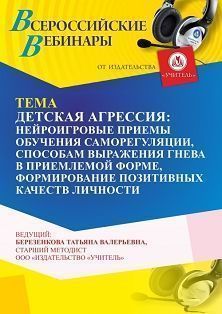 Вебинар «Детская агрессия: нейроигровые приемы обучению саморегуляции, способам выражения гнева в приемлемой форме, формирование позитивных качеств личности» Вебинары УчМет | V4.Ru: Маркетплейс