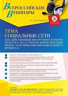 Вебинар «Социальные сети как действенный инструмент в работе педагога ОО и способ коммуникации между участниками образовательного процесса» Вебинары УчМет | V4.Ru: Маркетплейс
