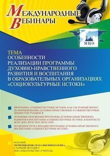 Международный вебинар «Особенности реализации программы духовно-нравственного развития и воспитания в образовательных организациях “Социокультурные истоки”»