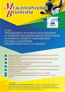Международный вебинар «Требования к результатам освоения основной образовательной программы основного общего образования в рамках освоения предметной области ОДНКНР»