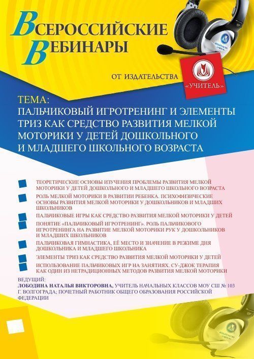 Приглашаем воспитателей ДО, учителей начальных классов, методистов принять участие в offline-вебинаре «Пальчиковый игротренинг и элементы ТРИЗ как средство развития мелкой моторики у детей дошкольного и младшего школьного возраста».