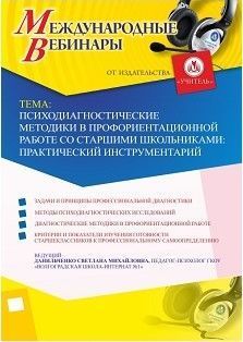 Приглашаем психологов, воспитателей ОО, социальных педагогов, классных руководителей, методистов принять участие в offline-вебинаре «Психодиагностические методики в профориентационной работе со старшими школьниками: практический инструментарий».