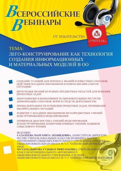 Приглашаем учителей начальных классов, учителей-предметников, педагогов дополнительного образования, методистов принять участие в offline-вебинаре «Легоконструирование как технология создания информационных и материальных моделей в ОО».