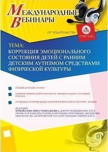 Приглашаем тренеров-преподавателей, инструкторов по физической культуре, педагогов дополнительного образования, психологов, методистов принять участие в offline-вебинаре «Коррекция эмоционального состояния детей с ранним детским аутизмом средствами физической культуры».