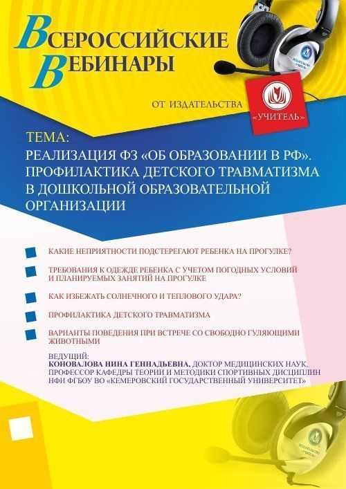 Приглашаем методистов, директоров, руководителей, заведующих, воспитателей принять участие в offline-вебинаре «Реализация ФЗ “Об образовании в РФ”. Профилактика детского травматизма в дошкольной образовательной организации».