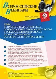 Вебинар «Психолого-педагогическое сопровождение обучающихся с ОВЗ в образовательном процессе профессионального образовательного учреждения» Вебинары УчМет | V4.Ru: Маркетплейс