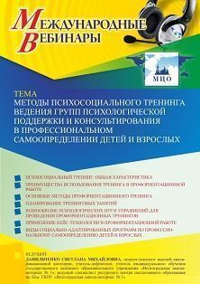 Международный вебинар «Методы психосоциального тренинга ведения групп психологической поддержки и консультирования в профессиональном самоопределении детей и взрослых»