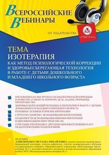 Вебинар «Изотерапия как метод психологической коррекции и здоровьесберегающая технология в работе с детьми дошкольного и младшего школьного возраста»