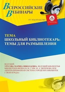 Вебинар «Школьный библиотекарь: темы для размышления» Вебинары УчМет | V4.Ru: Маркетплейс