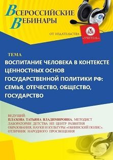 Вебинар «Воспитание человека в контексте ценностных основ государственной политики РФ: семья, Отечество, общество, государство»