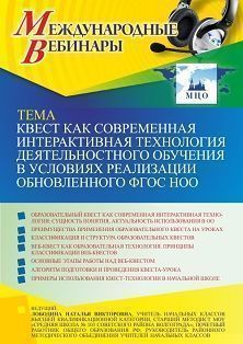 Международный вебинар «Квест как современная интерактивная технология деятельностного обучения в условиях реализации обновленного ФГОС НОО»