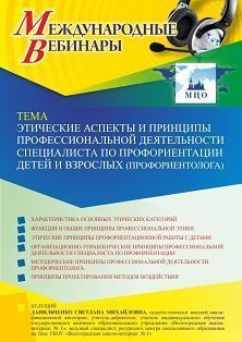 Международный вебинар «Этические аспекты и принципы профессиональной деятельности специалиста по профориентации детей и взрослых (профориентолога)»