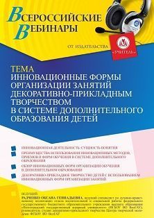 Вебинар «Инновационные формы организации занятий декоративно-прикладным творчеством в системе дополнительного образования детей» Вебинары УчМет | V4.Ru: Маркетплейс