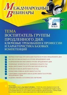 Международный вебинар «Воспитатель группы продленного дня: ключевые требования к профессии и характеристика базовых компетенций»