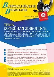 Вебинар «Кофейная живопись: материалы и техники, изобразительно-выразительные средства и особенности работы с дошкольниками и младшими школьниками»