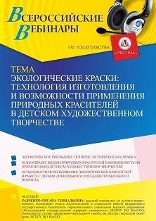 Вебинар «Экологические краски: технология изготовления и возможности применения природных красителей в детском художественном творчестве» Вебинары УчМет | V4.Ru: Маркетплейс
