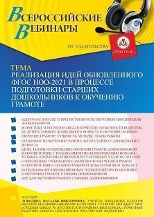 Вебинар «Реализация идей обновленного ФГОС НОО-2021 в процессе подготовки старших дошкольников к обучению грамоте»