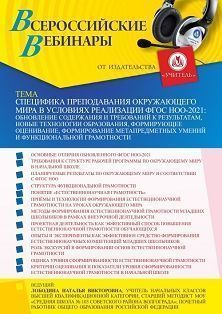 Вебинар «Специфика преподавания окружающего мира в условиях реализации ФГОС НОО-2021: обновление содержания и требований к результатам, новые технологии образования, формирующее оценивание, формирование метапредметных умений и функциональной грамотности»