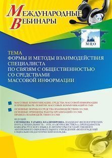 Международный вебинар «Формы и методы взаимодействия специалиста по связям с общественностью со средствами массовой информации» Вебинары УчМет | V4.Ru: Маркетплейс