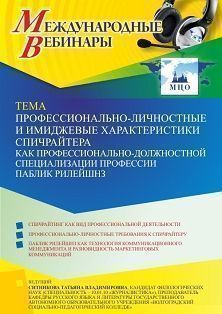 Международный вебинар «Профессионально-личностные и имиджевые характеристики спичрайтера как профессионально-должностной специализации профессии паблик рилейшнз»