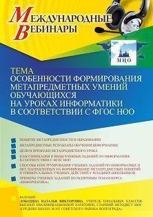 Международный вебинар «Особенности формирования метапредметных умений обучающихся на уроках информатики в соответствии с ФГОС НОО»
