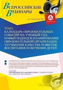 Вебинар «Календарь образовательных событий на учебный год: новый подход в планировании образовательной организации, улучшении качества развития, воспитания и обучении детей»