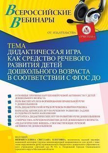 Вебинар «Дидактическая игра как средство речевого развития детей дошкольного возраста в соответствии с ФГОС ДО»