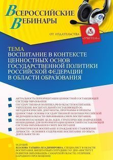 Вебинар «Воспитание в контексте ценностных основ государственной политики Российской Федерации в области образования»