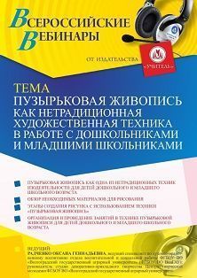 Вебинар «Пузырьковая живопись как нетрадиционная художественная техника в работе с дошкольниками и младшими школьниками» Вебинары УчМет | V4.Ru: Маркетплейс