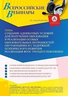 Вебинар «Создание адекватных условий для получения образования и реализации особых образовательных потребностей обучающимися с задержкой психического развития: реализация ФГОС третьего поколения»
