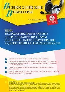 Вебинар «Технологии, применяемые для реализации программ дополнительного образования художественной направленности» Вебинары УчМет | V4.Ru: Маркетплейс