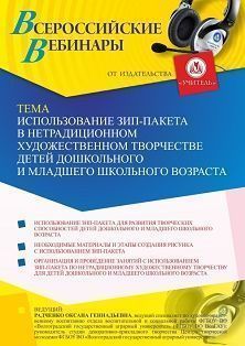 Вебинар «Использование зип-пакета в нетрадиционном художественном творчестве детей дошкольного и младшего школьного возраста»