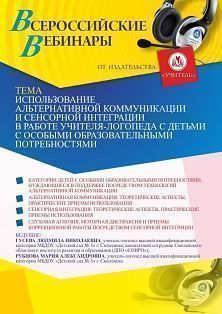 Вебинар «Использование альтернативной коммуникации и сенсорной интеграции в работе учителя-логопеда с детьми с особыми образовательными потребностями»